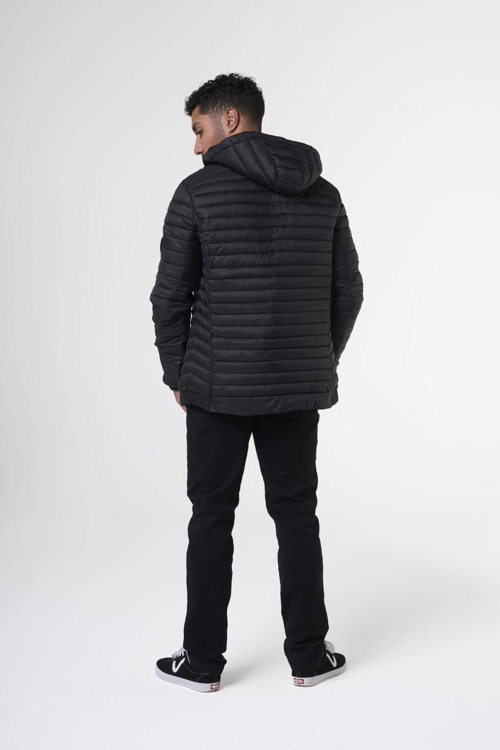 Une proteção térmica, visual neutro, bolsos externos funcionais e capuz removível que se adapta ao seu ritmo.